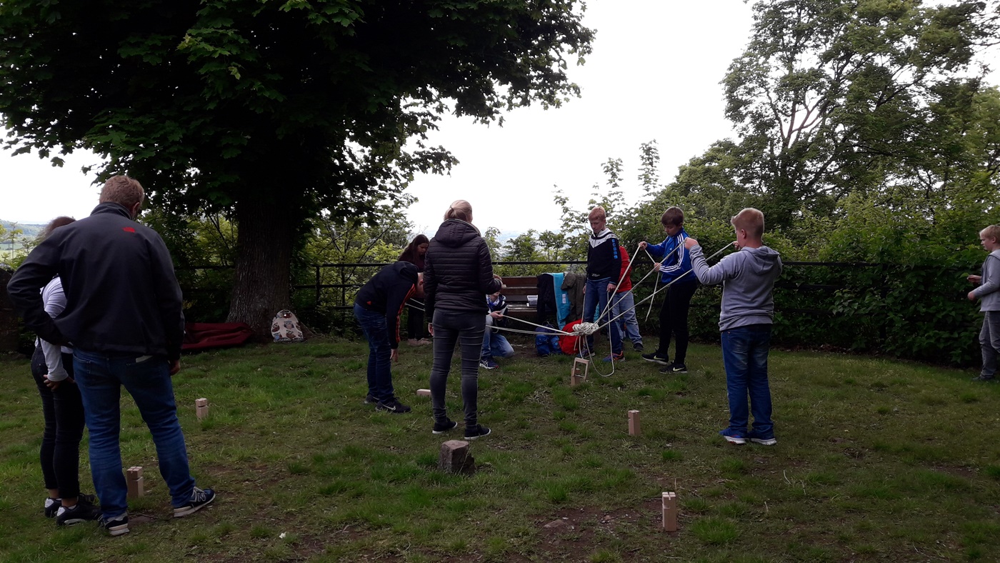 Stationen Monkeyclimbing, Kistenklettern, Fröbelkran, Riesenjenga,